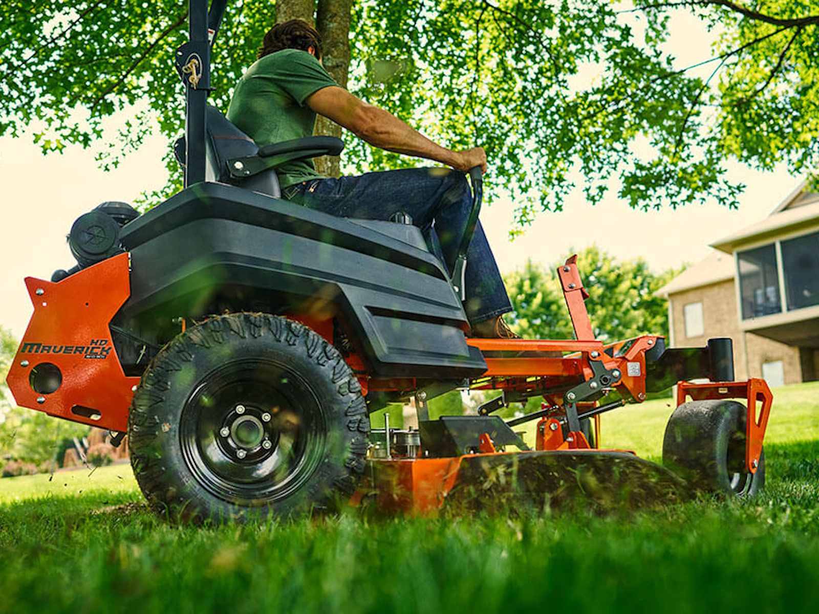 You want upgraded power and durability at an affordable price? The Maverick HD delivers. Our Hydro-Gear ZT-3400 Integrated High-Efficiency Drive System has commercial-rated hydraulics with a heavier 1.25˝ shaft. They're built stronger to last longer. Our patented independent, suspended cast front I-Beam rails support 3/8˝ Steel Front Forks that lead the industry in strength and durability. We even upgraded the spindles. The Maverick HD shares the same pro-class, heavy-duty spindles and blade drive components as our larger R-Series models. This Bad Boy is built to last, mow all day and continue to deliver pro-class cuts again and again.
