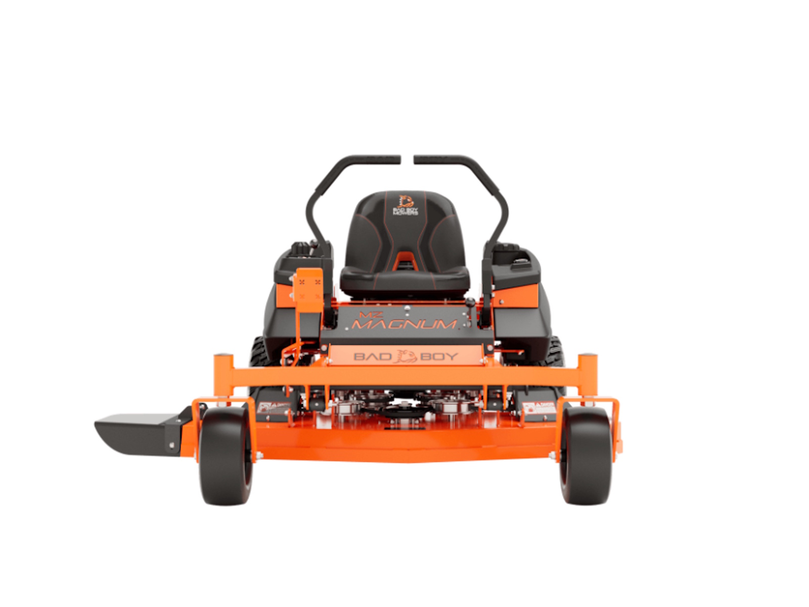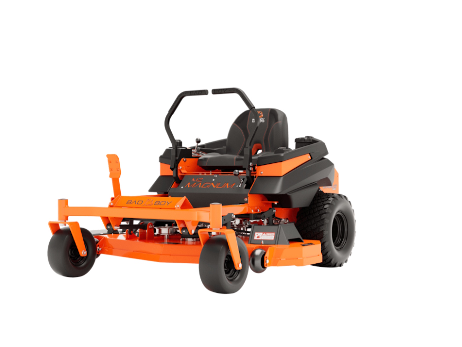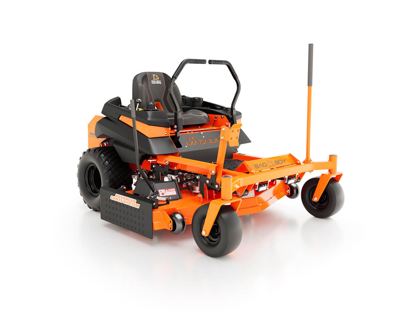 Most mowers in this price range are stamped from flimsy steel and bolted together. But not this Bad Boy. This MZ Magnum is loaded with a 2˝ x 2˝ all-steel rail frame for its backbone, a lower center of gravity and industry-leading 3/8˝ steel front forks. Plus, there's the all-new solid steel, all-welded sloped deck, the heaviest deck you can get in this class of mowers. Magnum's deck strength is the stuff of legend. Made from 3/16 inch or 7-gauge steel with reinforced edges and additional ¼” side plates, it's durable and dependable day after day. Choose between the 48” or 54” deck, both features a baffling system to maximize airflow for greater grass lift and a cleaner cut.