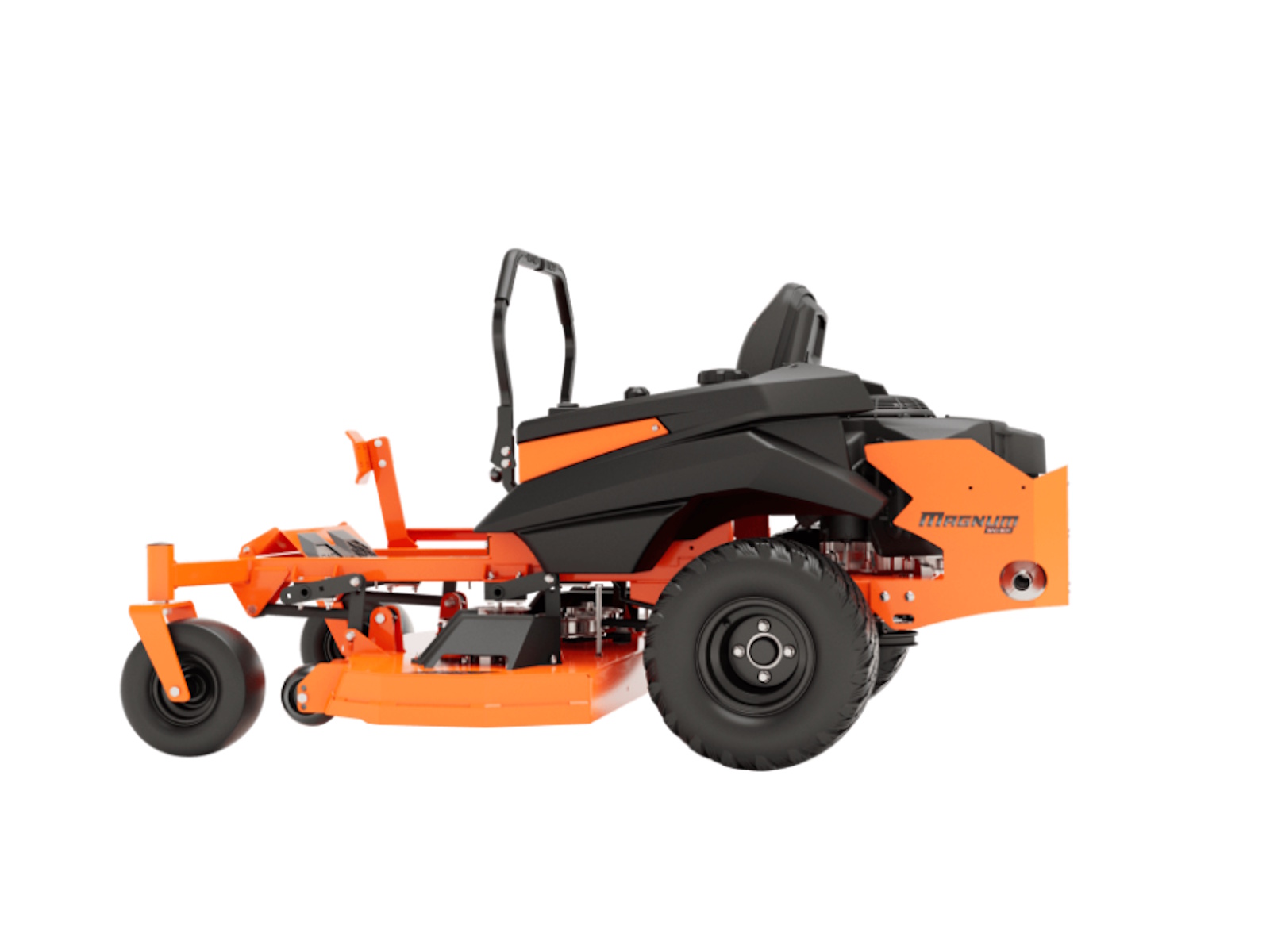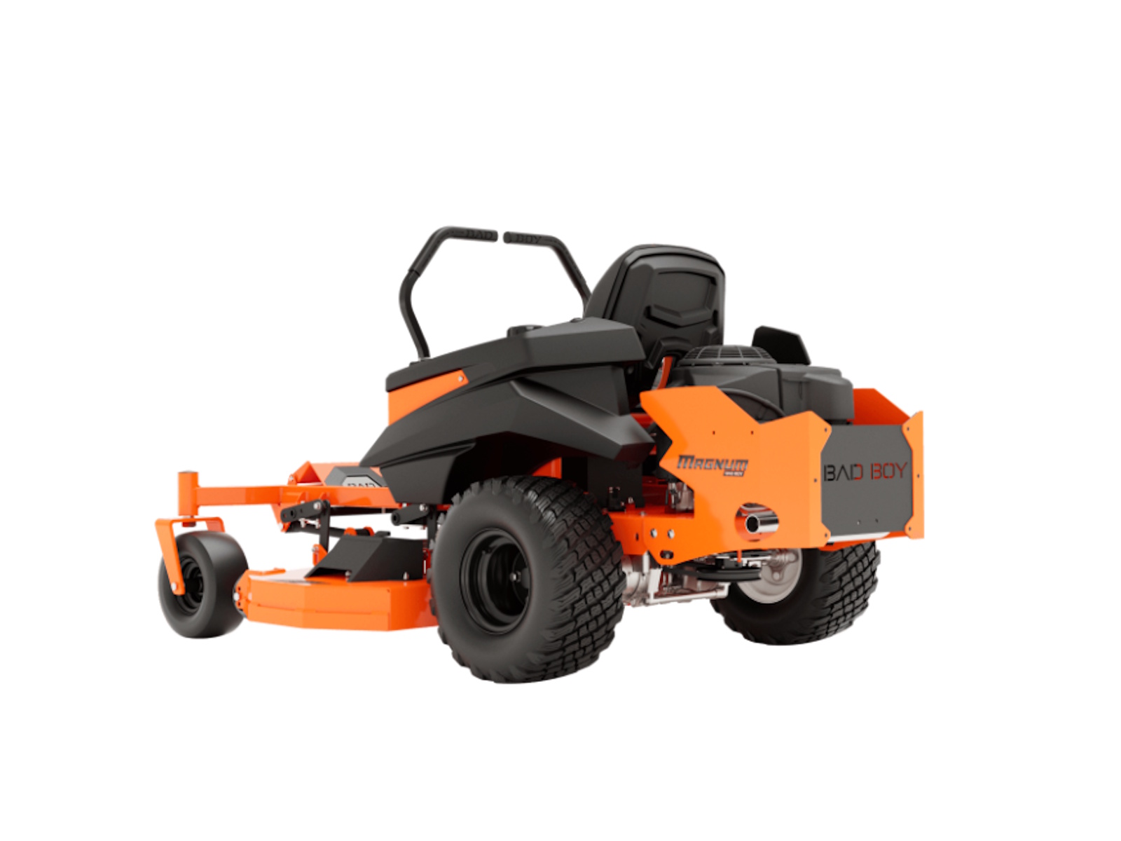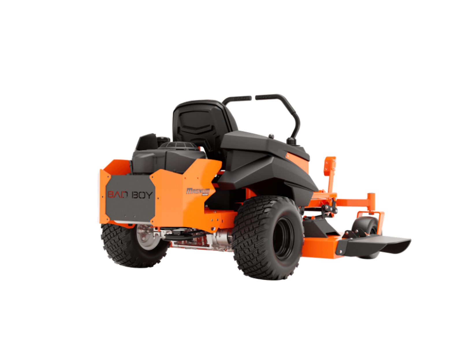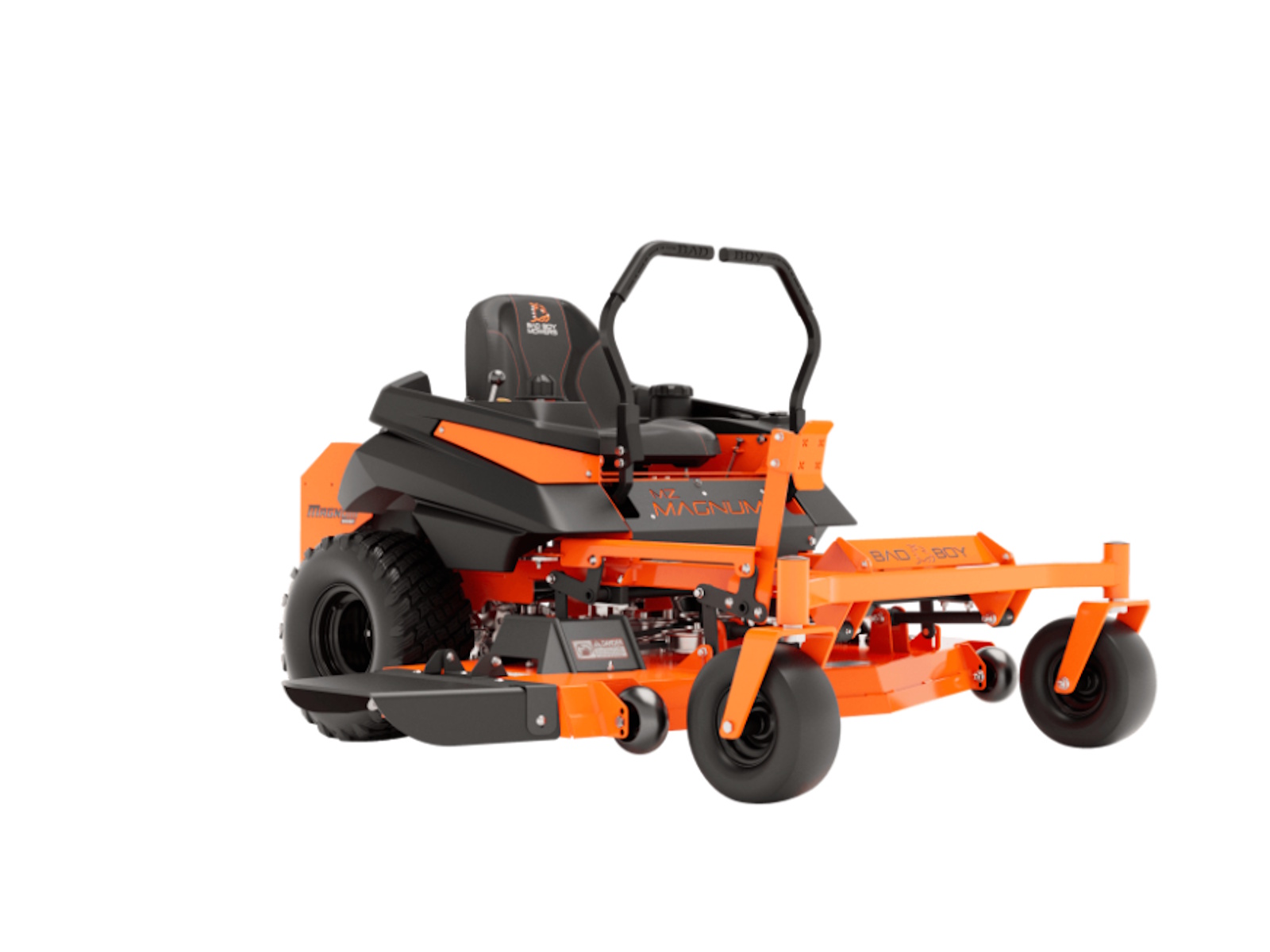 Most mowers in this price range are stamped from flimsy steel and bolted together. But not this Bad Boy. This MZ Magnum is loaded with a 2˝ x 2˝ all-steel rail frame for its backbone, a lower center of gravity and industry-leading 3/8˝ steel front forks. Plus, there's the all-new solid steel, all-welded sloped deck, the heaviest deck you can get in this class of mowers. Magnum's deck strength is the stuff of legend. Made from 3/16 inch or 7-gauge steel with reinforced edges and additional ¼” side plates, it's durable and dependable day after day. Choose between the 48” or 54” deck, both features a baffling system to maximize airflow for greater grass lift and a cleaner cut.