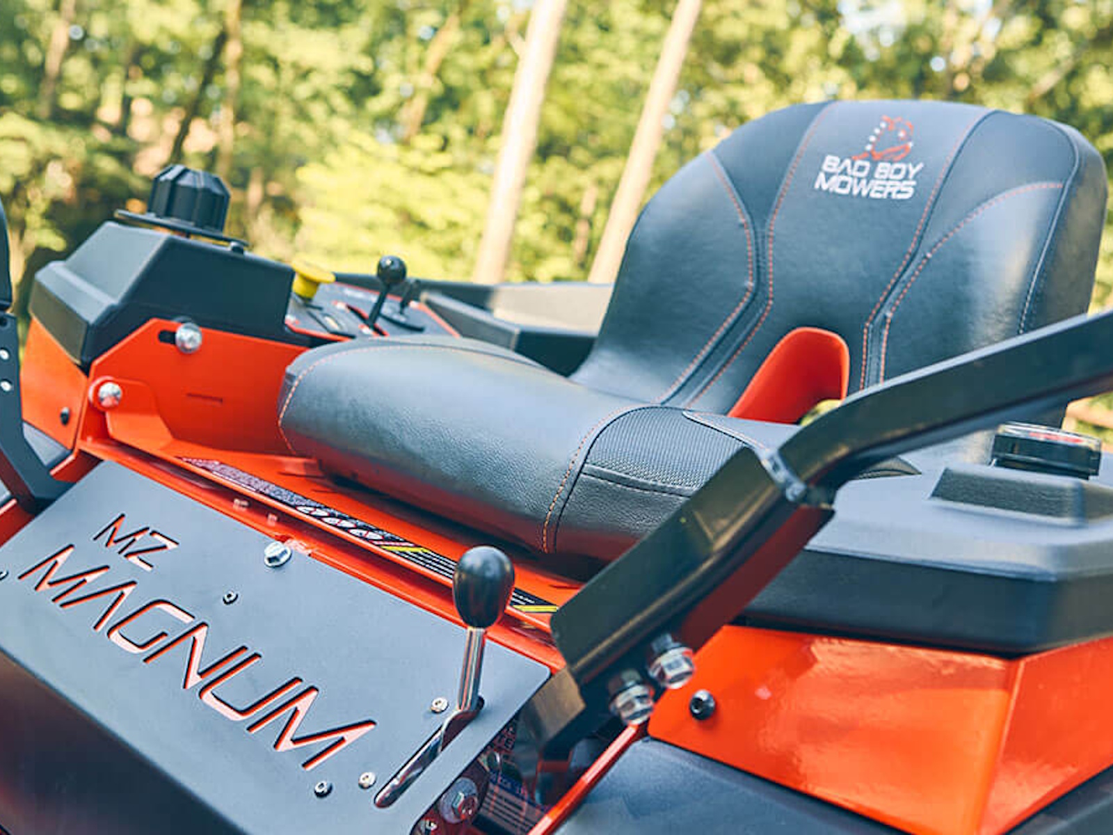 With the Bad Boy MZ Magnum residential mower, you're in complete control. The cushioned seat adjusts front to back for the perfect ride. Steering is tighter and smoother with our steering dampening system, giving you better response and maneuverability. Adjusting the mowing height is as simple as lifting the left- or right-side foot pedal, then you can dial it in to your exact specifications with our Deck Dial. It's located right at your fingertips, along with the electric blade start, throttle and engine start. A few quick moves and you're ready to mow your way. Think of it as convenience, control and comfort, combined in one mower.