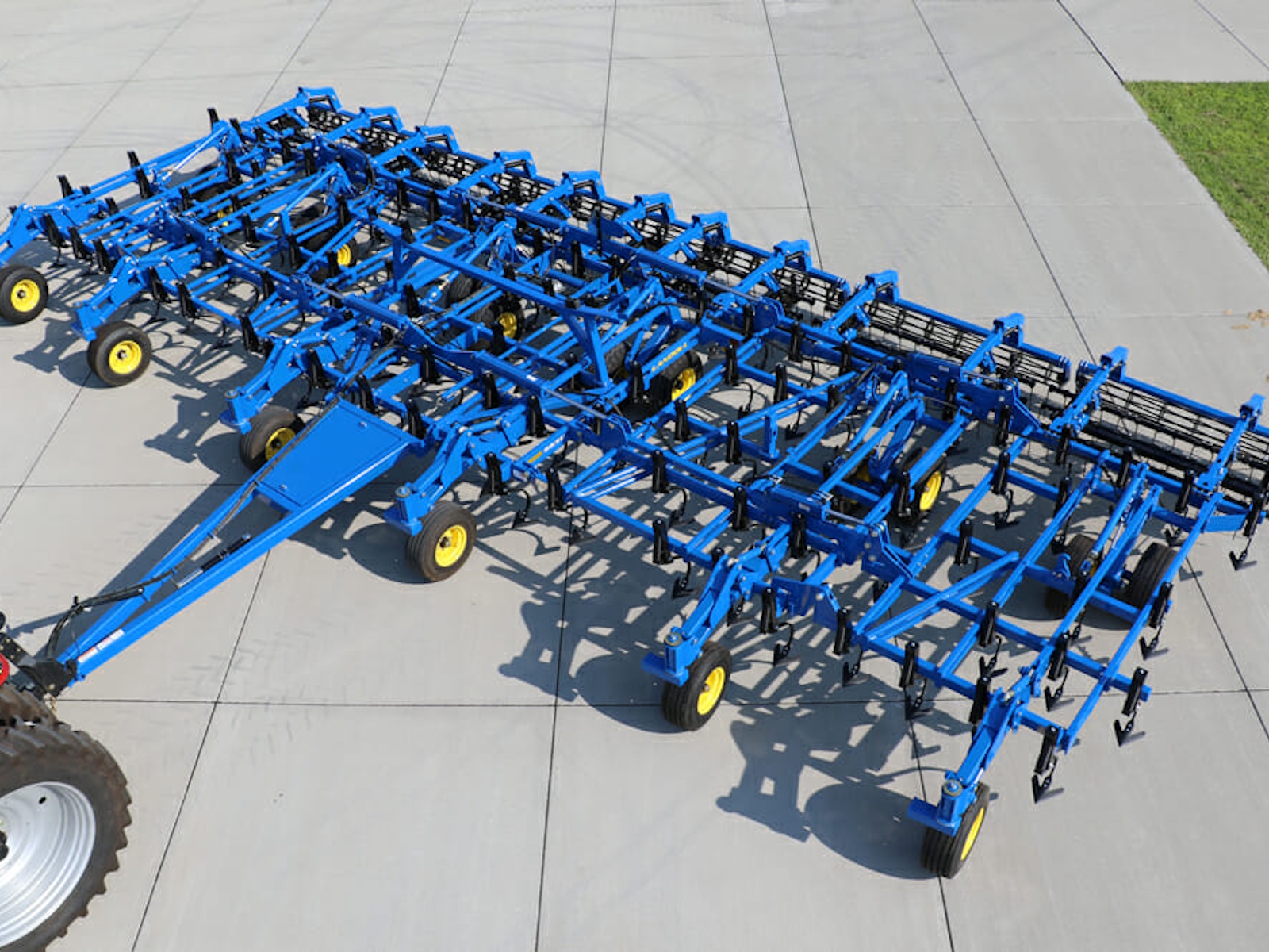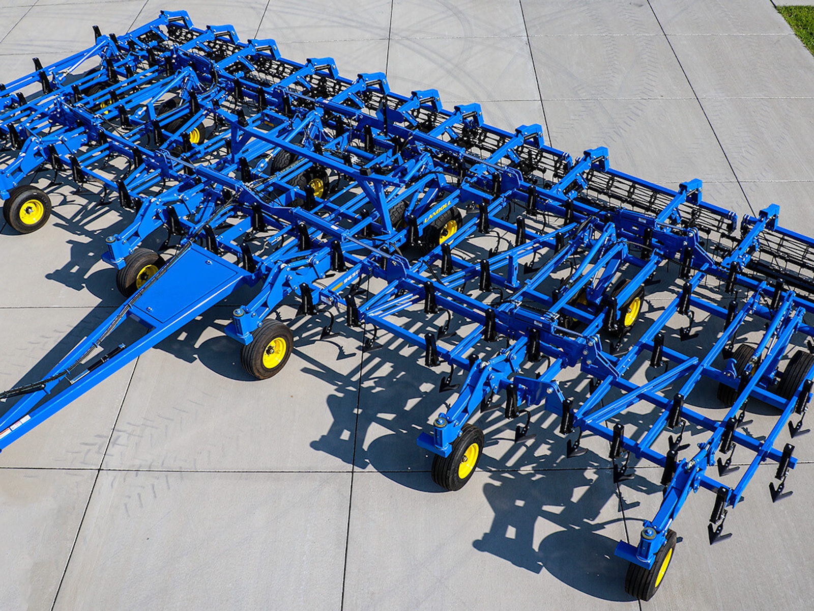 The 9000 Series is available in sizes from 20’6” to 50’6”. Landoll offers a variety of optional rear leveling devices; choose from a 4-Row Coil Tine, 5-Row Spike, 3-Row Tine and Reel, 3-Bar Spike and Reel or 3-Row Spike and Double Flat Blade Reel . A rear hitch for towing additional implements is also available.