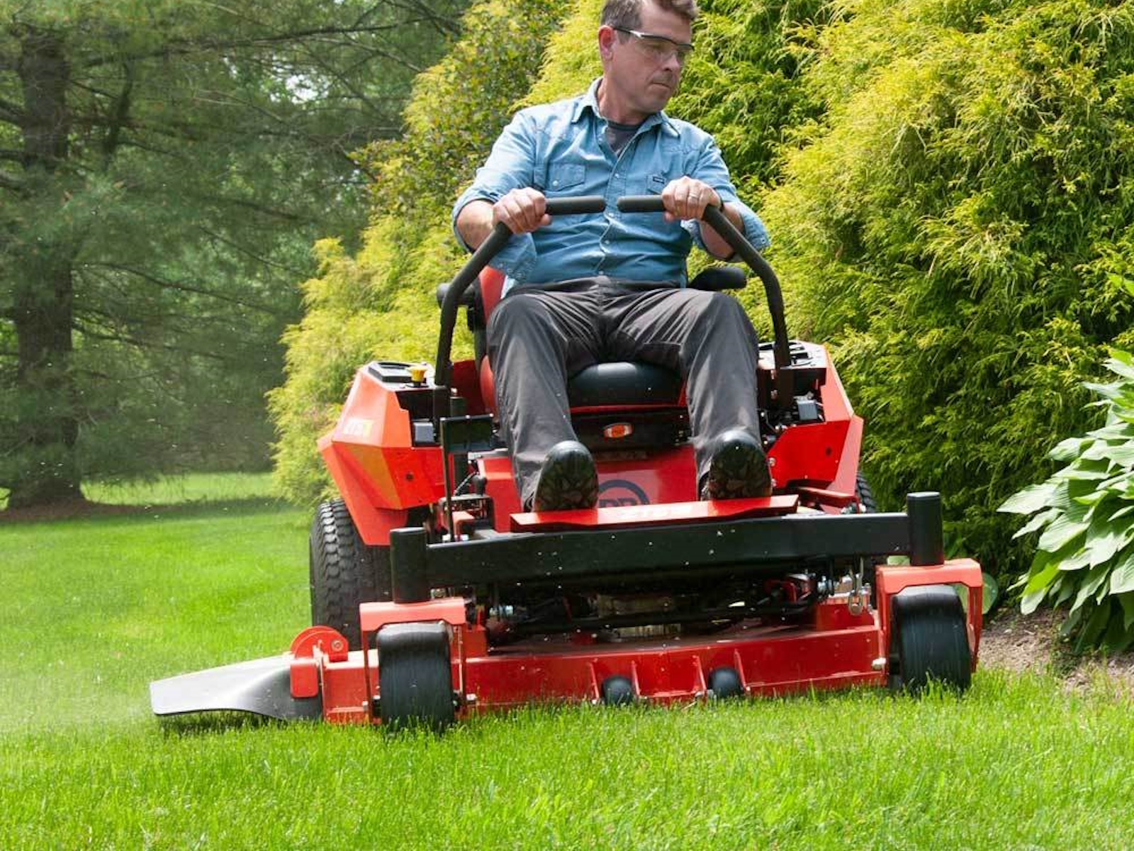 - Commercial style steering bars are adjustable for rider comfort. Dampened for steady, straight-line mowing. Action becomes intuitive with just a little practice.