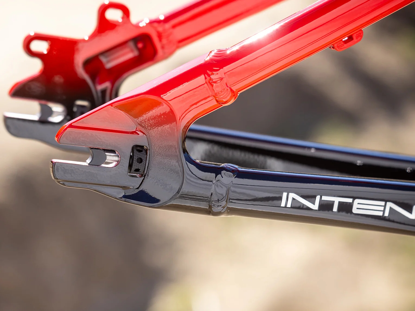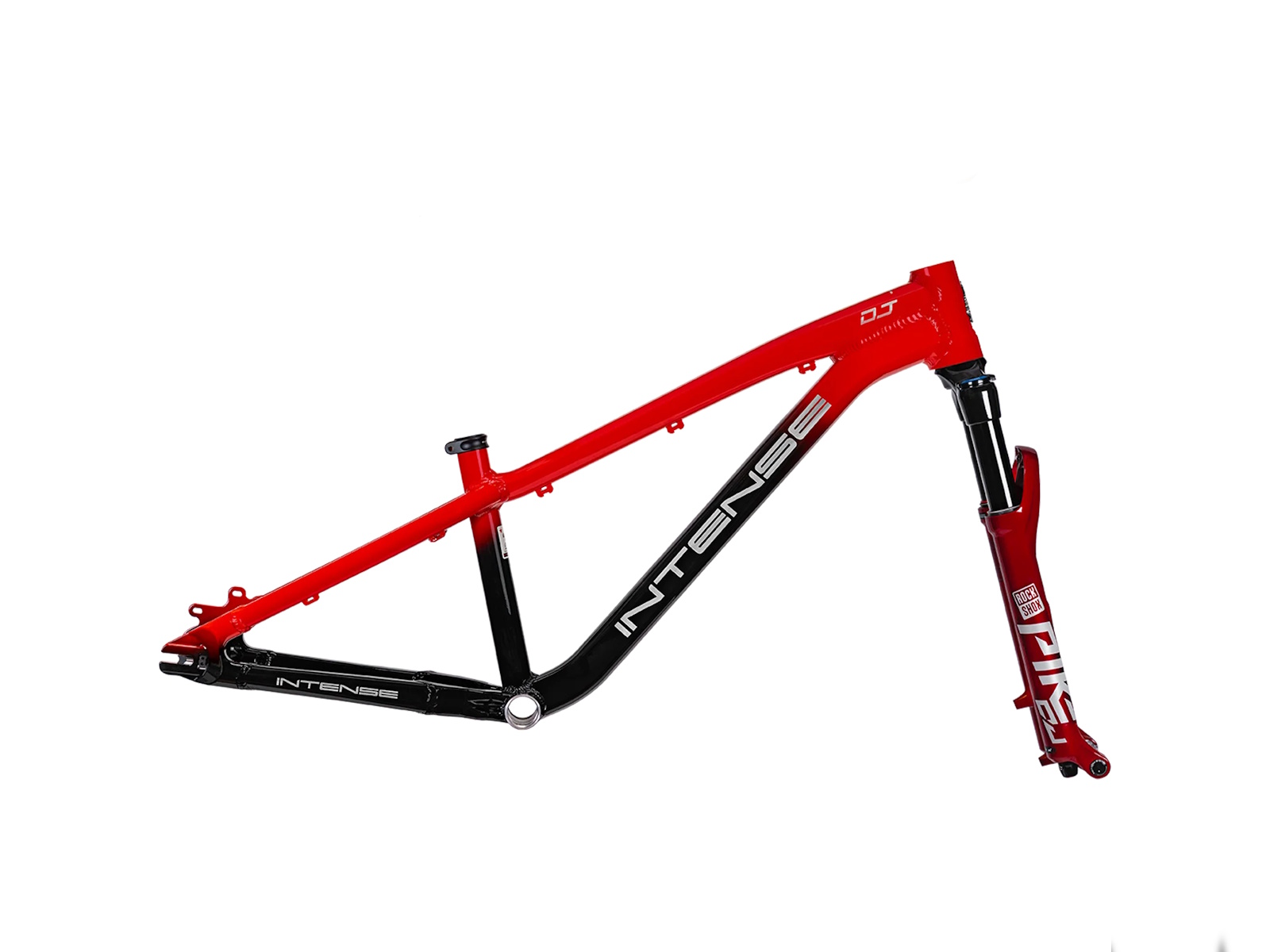 - The tapered head tube on the INTENSE DJ offers enhanced strength and stiffness, providing a more responsive and controlled ride—especially noticeable during hard landings and aggressive riding. It also ensures greater compatibility with a wider range of forks, giving you more flexibility when choosing components and future-proofing your setup for upgrades down the line.