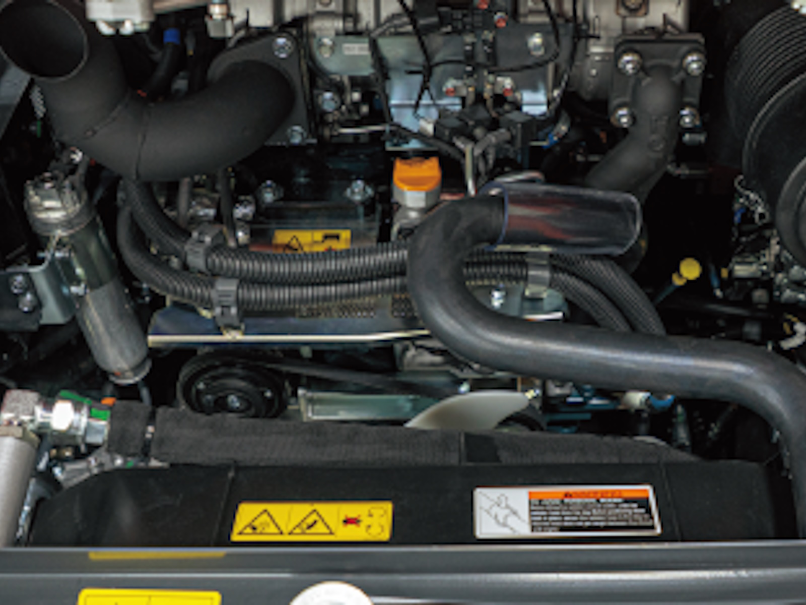 - Both the radiator and the oil cooler quickly slide forward and tilt downwards, helping to ensure access to other engine parts during maintenance.