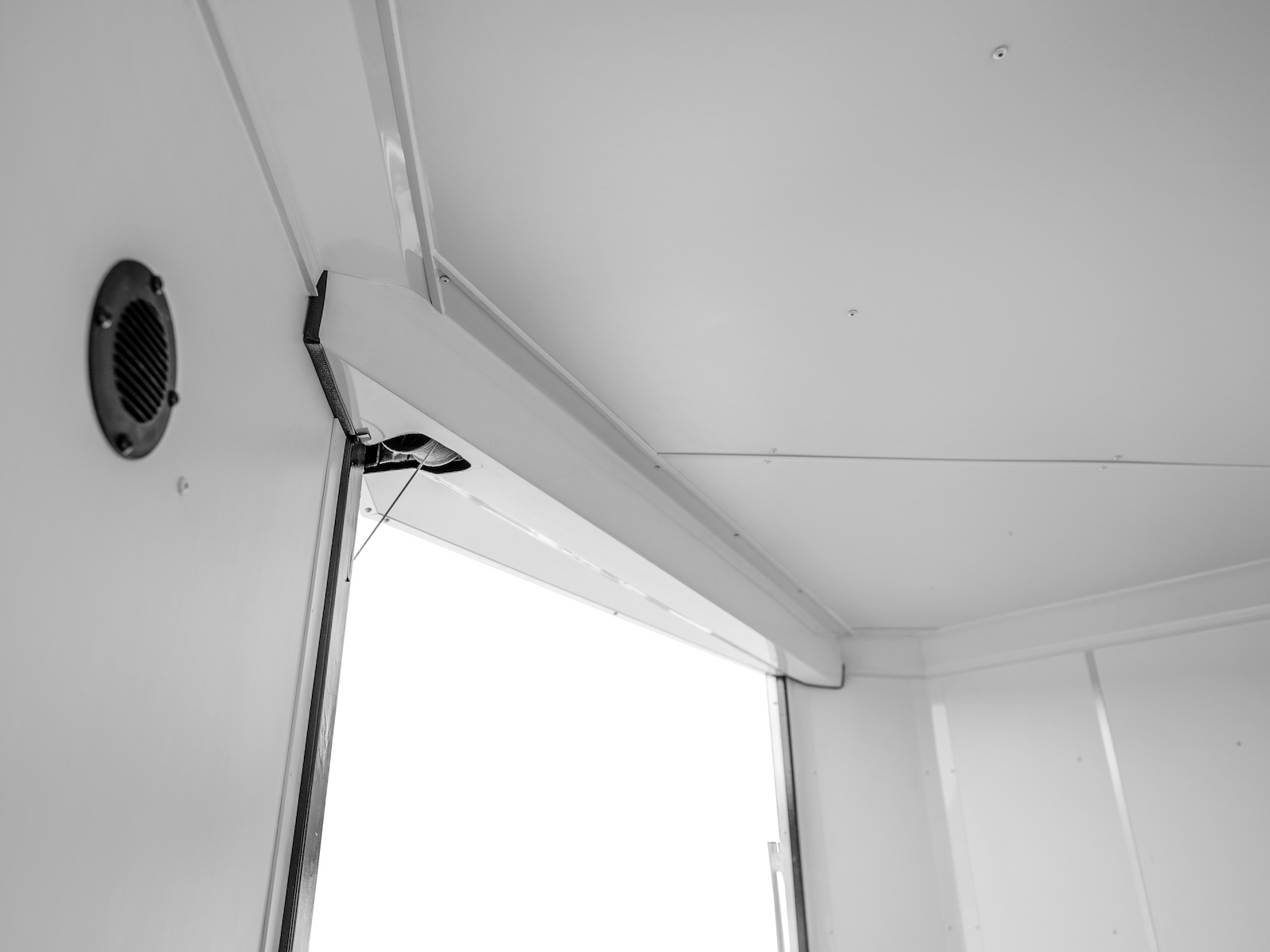 The interior of the Motorsport trailers features 9mm white vinyl walls, vinyl H-molding on the walls, and a .045″ ATP kickplate. The flooring is made of 3/4″ Nudo flooring, which is used for the trailer, ramp, and extension. The trailers have automotive undercoating and a white vinyl ceiling with white aluminum coves. They also have (4) 5K D-rings and Xtreme slide track with (8) D-rings for securing cargo. The trailers are equipped with a 7-way electric plug and a breakaway battery with a switch. They have bullet LED marker and clearance lights, as well as slimline LED tail lights with an integrated backup light. The trailers also have loading lights under the spoiler and over the front ramp, both with switches. Additionally, they have (2) 11in deluxe LED dome lights with a switch. The exterior of the trailers features a 0.030 aluminum exterior, brite aluminum rear hoop, and a white, black, silver, pewter, or charcoal screwless exterior. They also have a 24″ tall straight ATP stone guard, brite nose cap, and 2.5″ top trim and 3″ bottom trim. The trailers have a seamless aluminum roof and a 9″ deep rear flare with a brite aluminum ceiling. They also have an interior recessed step, cast aluminum door holdback, and a rear ramp door with spring assist. The ramp door has a capacity of 4000 lbs and is equipped with traction bars. The trailers also have a wrap-around V-nose ramp door and a 14″ x 14″ fuel door. They are equipped with sidewall vents for ventilation.