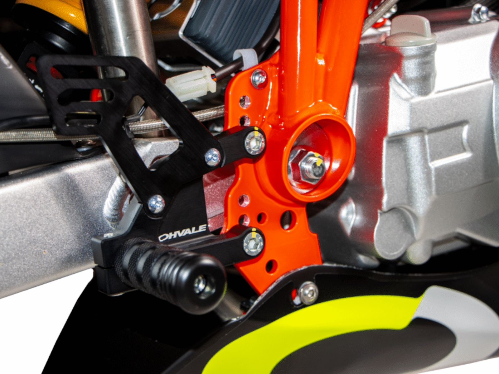 High-strength steel trellis frame, robotic welding, new swingarm pivot position and new fluor red color