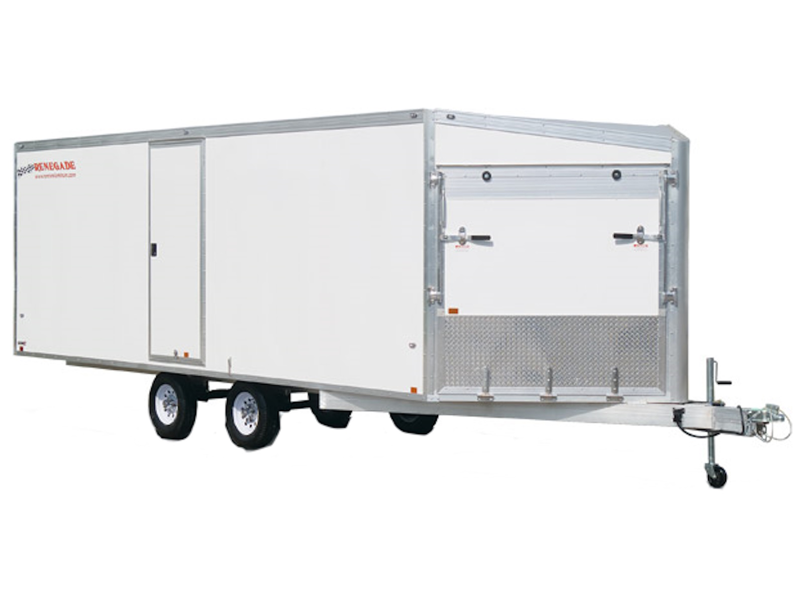 If 7 feet wide does not cut it for you then explore the Rance 8.5' Wide Enclosed Snow Trailer. They offer more room to store your payload and the wider front and rear ramp doors make it easier to enter and exit the trailer. The Renegade Model includes a 5-year warranty, aluminum rims, engineered flooring, stainless steel hinges, and a deluxe side door.