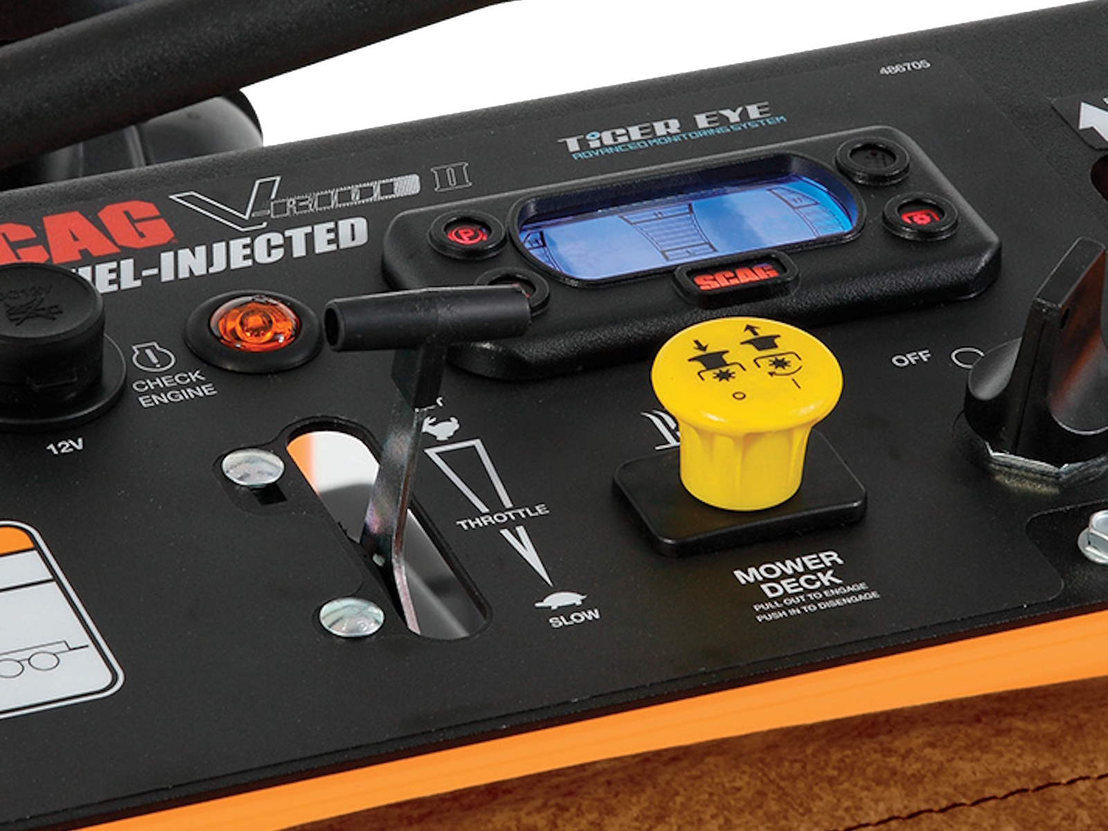 • The Tiger Eye™ Advanced Monitoring System monitors a wide variety of systems in real-time, giving you valuable information in just a glance, right from the operator’s seat. (Specific functions vary by mower model and engine.)