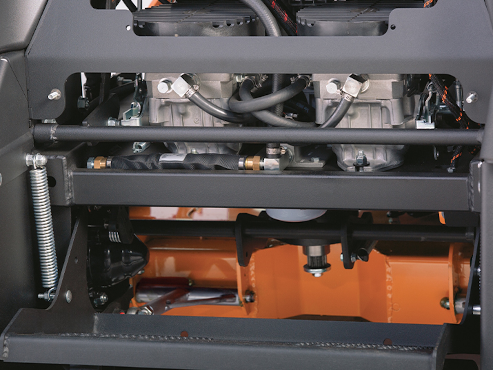 • Heavy-Duty Hydro-Gear pumps (16 cc) and high-torque Hydro-Gear wheel motors (18 ci) deliver dependable power, with speeds up to 11.6 mph. Pump shock valves ensure reliability and long life. Cooling fans help maintain safe operating temperatures.