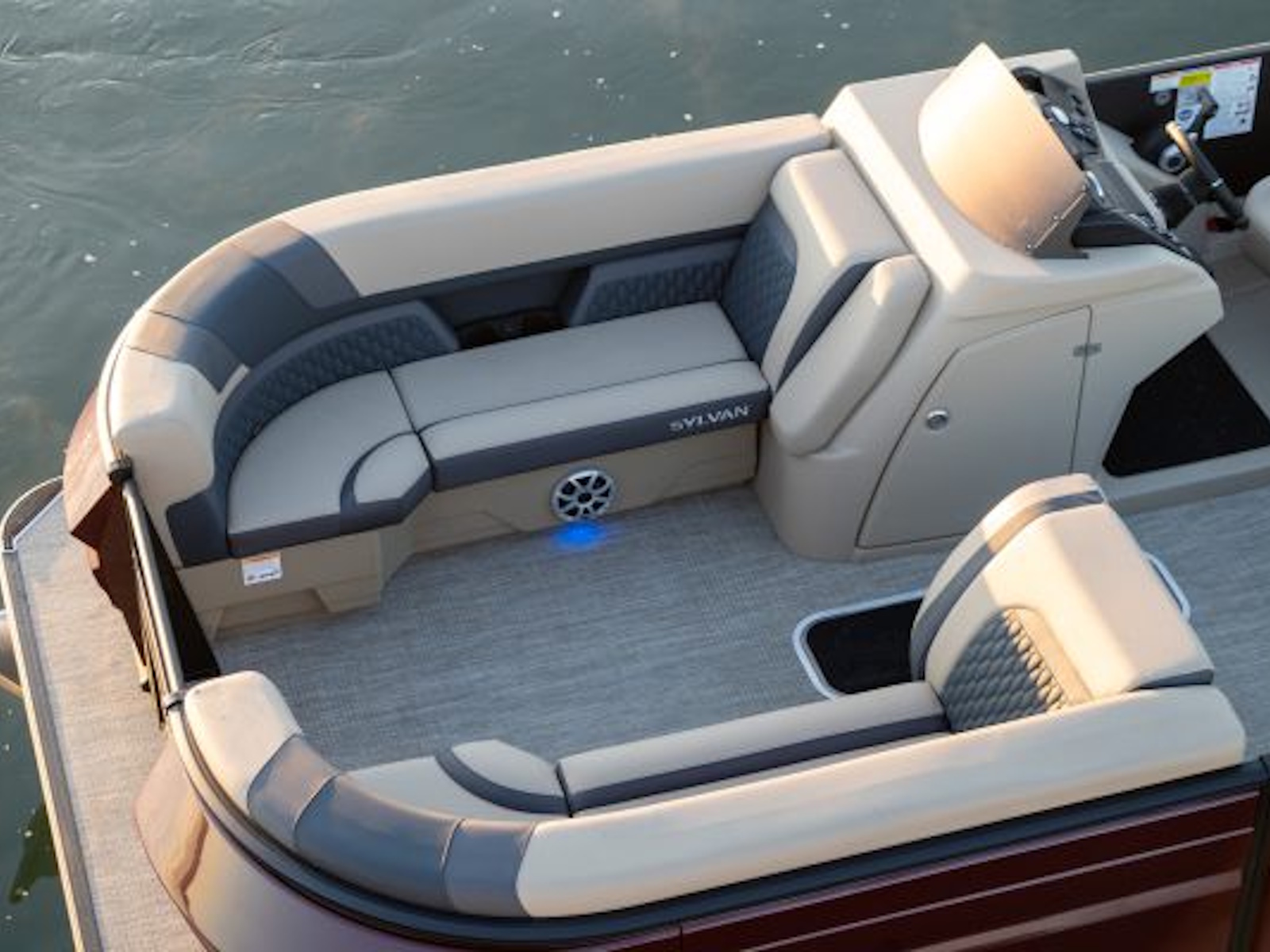 The Sylvan pontoon L5 SLZ elevates your on-water experience with its ingenious design, maximizing seating comfort with bow wrap-around couches, and multiple swing back stern seating which provides versatility without compromising on luxury. This pontoon embodies the signature features that define the L-series from Sylvan, ensuring an indulgent outing every time. With the standard SPX third tube performance package, the Sylvan L5 SLZ guarantees exceptional stability and effortless cruising, promising a safe and enjoyable journey for all passengers. Additionally, the standard power canopy provides ample shade, allowing you to bask in the sun or find refuge from its rays as you please. Whether you're lounging with friends or embarking on thrilling adventures, the Sylvan L5 LZ offers the perfect blend of comfort, performance, and style for unforgettable moments on the water.