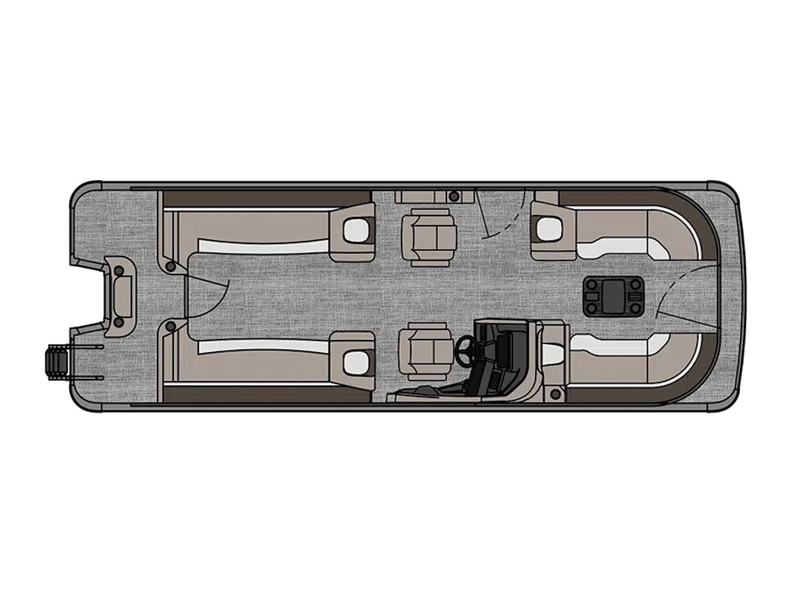 - Rear fishing center with 2 fishing chairs, rod holders & livewell (RF)