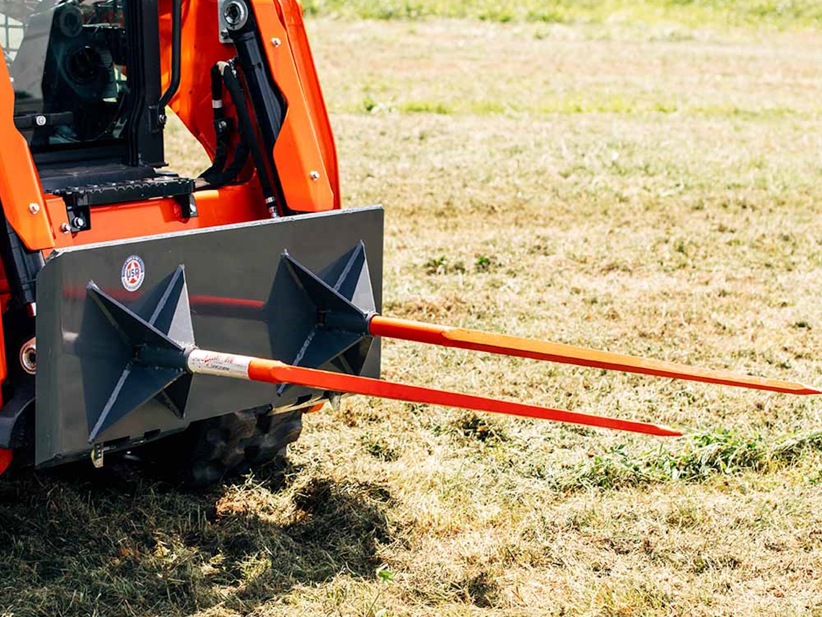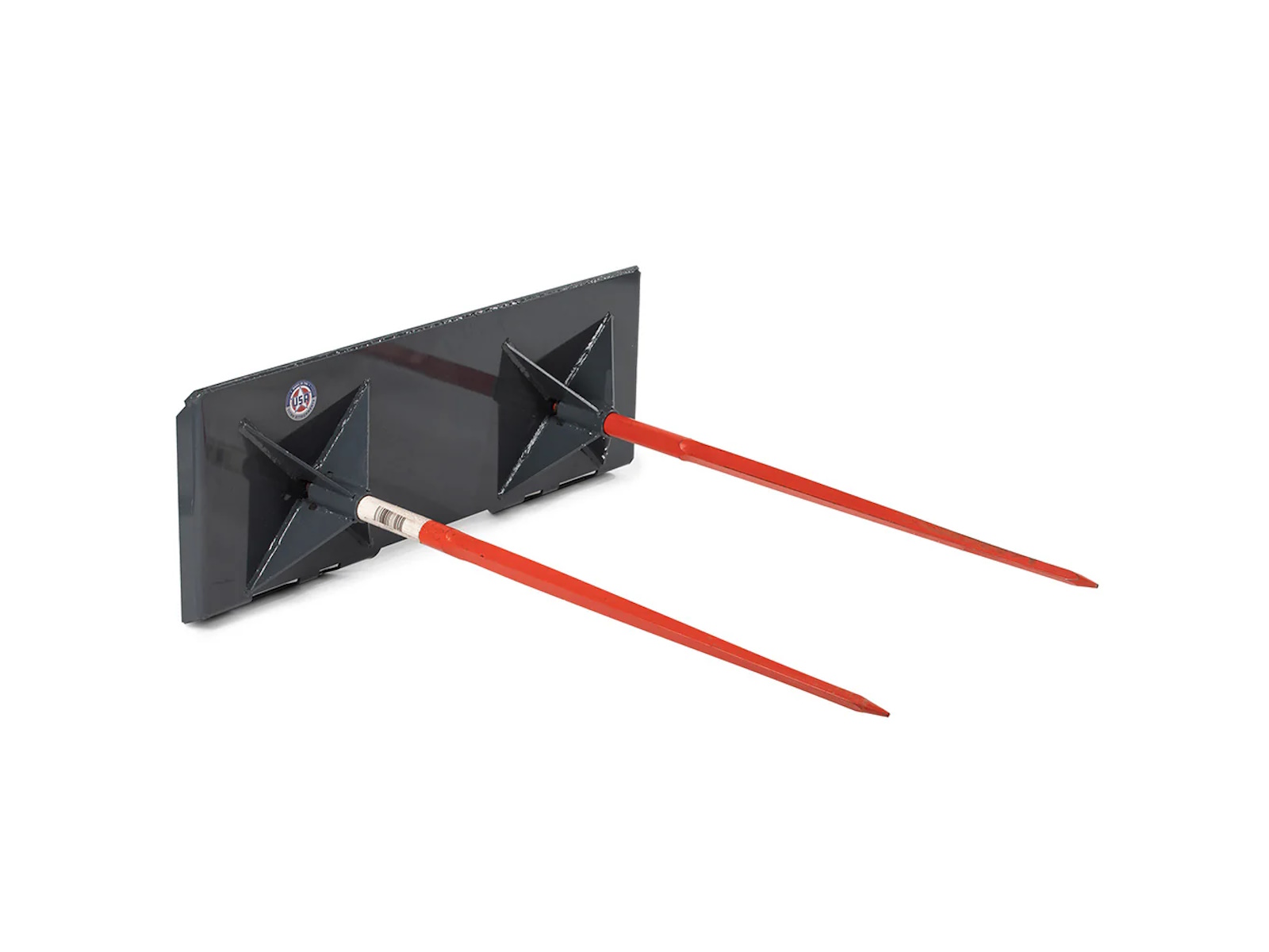 Designed and crafted in the USA, this dual hay frame attachment is made with top quality materials and precision workmanship for long-lasting and dependable use. Equipped with an SSQA Universal Skid Steer Connection, this frame fits all full-sized skid steers and most tractors with a quick tach system, including New Holland, Bobcat Skid Steer, and Kubota tractors. This model is available as a standalone frame with C2 spear sleeves welded to the frame or with two Conus 2 main spears included in your choice of length; perfect for moving large round or square hay bales around your property. And it’s designed without a back guard for safe and easy visibility when placing your spears into hay bales. Weighing 87 LB and built with thick, durable steel, and a rust-resistant powder coating, this hay frame has an impressive 4,000 LB capacity for lifting large hay bales.