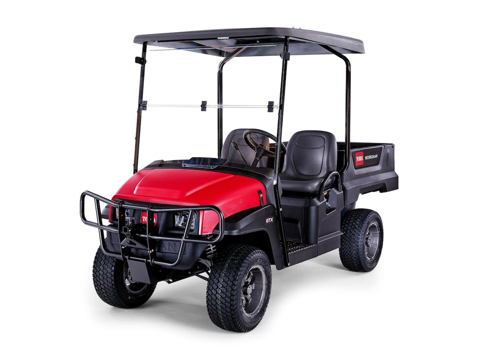 - The Workman GTX is adaptable for any task. Two or four-seat configurations come with bench or bucket seats. Front and rear attachment points for garbage cans, hose reels or walk spreaders free up the bed for more hauling capacity. Steel 4 and 6-foot flat beds are also available.